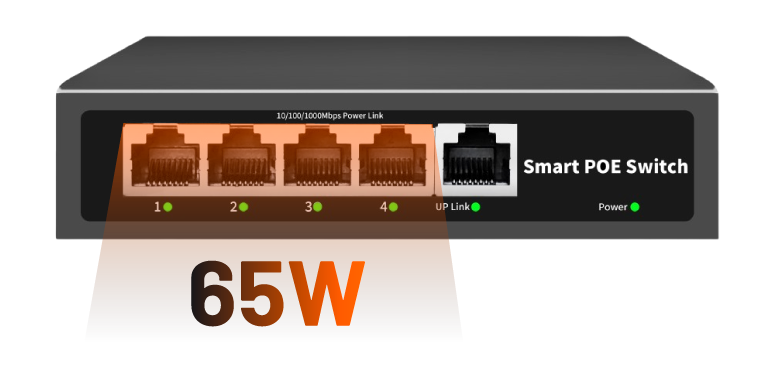65W total power budget designed for conitinues delivery for camera and other PoE systems