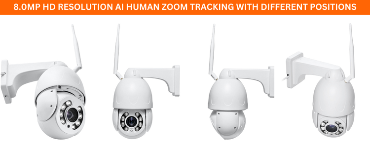 • AI Human Zoom Tracking • 8.0MP HD Resolution (3840 × 2160) with 20X Optical Zoom (4.7 - 94mm) • 355° Pan, 90° Tilt for extensive coverage • 80m Night Vision with 8pcs IR Array Smart IR LED • Two-Way Audio with built-in Mic & Speaker • IP66 Weatherproof Metal Housing • Supports TF Card/MicroSD up to 128GB • Compatible with 2.4GHz Wi-Fi, RJ45 Wired, and ONVIF Protocol • H.265 Video Compression • AI Human Body Detection with Accurate Motion Detection • Mobile Alert Notification & Auto tracking • 12V DC Power and 1.4 KG weight